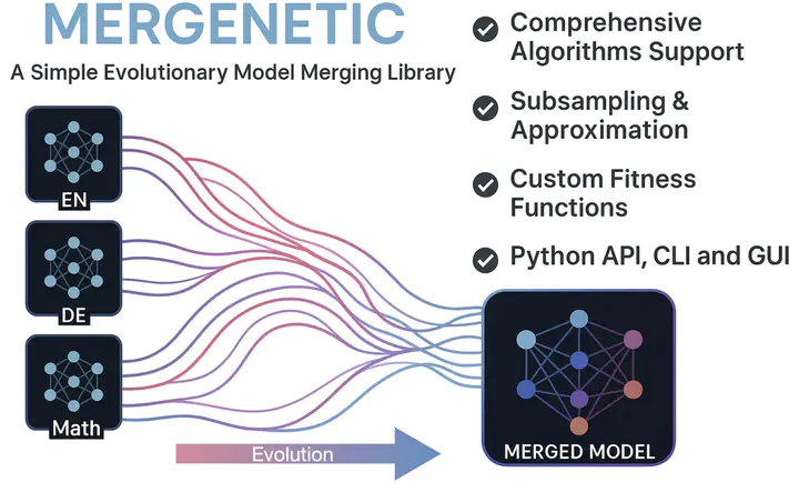 Model merging allows combining the capabilities of existing models into a new one—post hoc, without additional training. This has made it increasingly popular thanks to its low cost and the availability of libraries that support merging on consumer GPUs. Recent work shows that pairing merging with evolutionary algorithms can boost performance, but no framework currently supports flexible experimentation with such strategies in language models. We introduce Mergenetic, an open-source library for evolutionary model merging. Mergenetic enables easy composition of merging methods and evolutionary algorithms, while incorporating lightweight fitness estimators to reduce evaluation costs. We describe its design and demonstrate that Mergenetic produces competitive results across tasks and languages using modest hardware. A video demo showcasing its main features is also provided.
